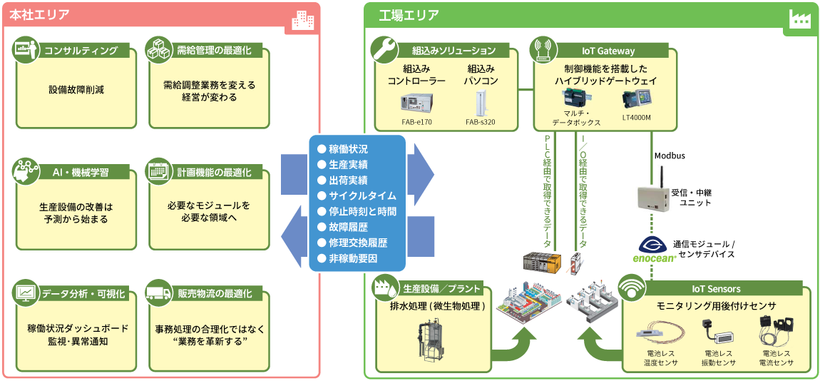 各分野の専門知識、強みを持った企業とのパートナーシップにより、生産に関する業務改善からIoTプラットフォームの構築・データ活用まで幅広く提供し、製造業における収益の課題を解決します。ビジネスにおけるエコシステムとは、複数の企業または団体がパートナーシップを組み、それぞれの技術および強みを活かしながら、業種・業界の垣根を越えて共存共栄する仕組みです。