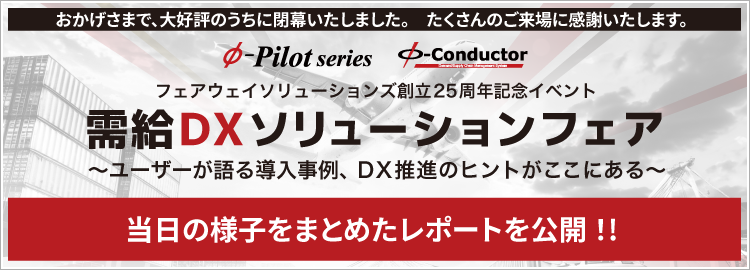 2025年11月27日に開催いたしました、フェアウェイソリューションズ創立25周年記念イベント『需給DXソリューションフェア~ユーザーが語る導入事例、DX推進のヒントがここにある~』につきまして、イベントレポートを掲載いたしました。